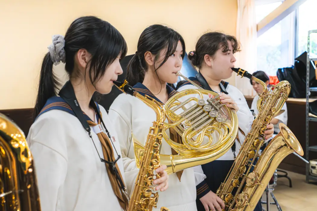 吹奏楽クラブは、世界教室や定期演奏会に向けて週に1~2回程度活動しています。先輩後輩の垣根を越えて仲が良く、アットホームなクラブです。定期演奏会の内容を自分たちで考えるなど、主体的に活動しています。初心者も大歓迎です。