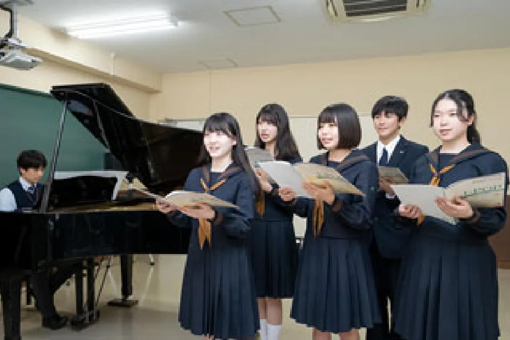 合唱部は学年問わず仲が良く、和気あいあいとした部活です!年2回のコンクールに向けて練習を重ねており、2月に行われた「春コン」では優秀賞を受賞することができました。経験者・未経験者問わず、歌を楽しむという気持ちを大切に、教え合い、高め合いながら活動しています。合唱曲だけでなく、流行りの曲や馴染みのある曲なども歌っているので、気軽に参加してみてください。