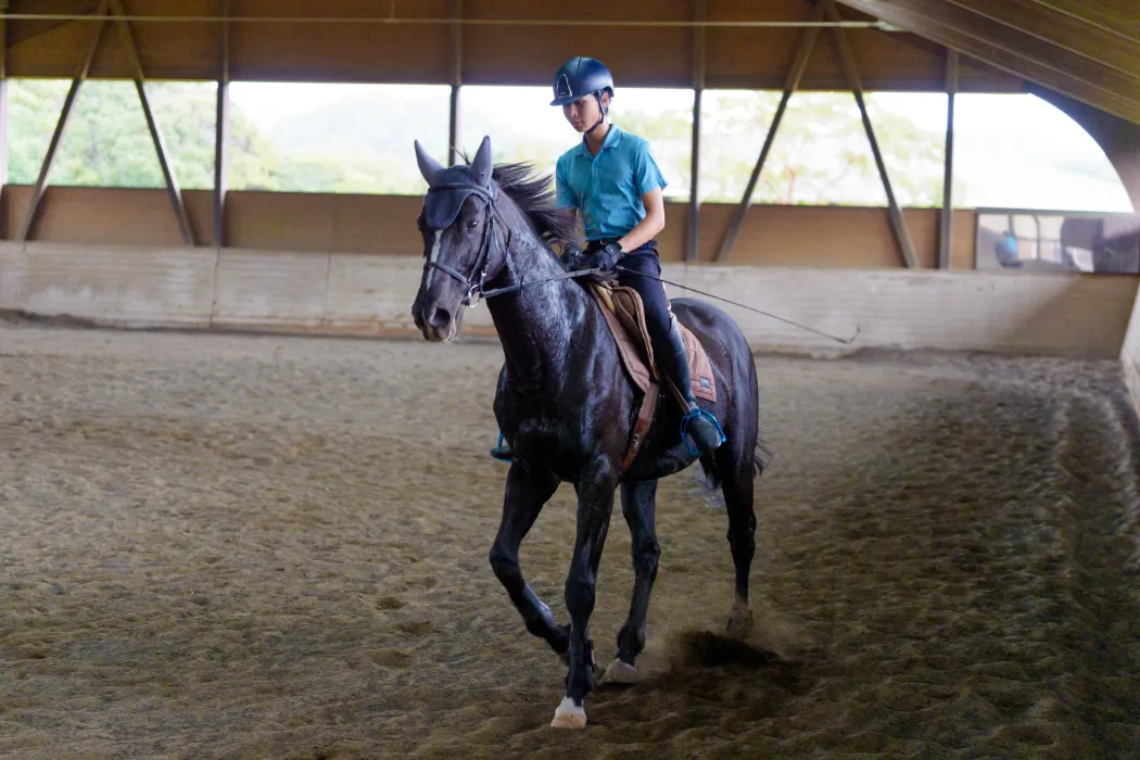 1990年の創部以来、インターハイや高校馬術の大会で好成績を残しています。馬術は自分だけが頑張るのではなく馬とのコンタクトや仲間の協力が必要なスポーツです。私たちはそれぞれの技術の向上はもちろんですが、共に練習をする馬や仲間を思いやりる気持ちを常に大切にして日々頑張っています。