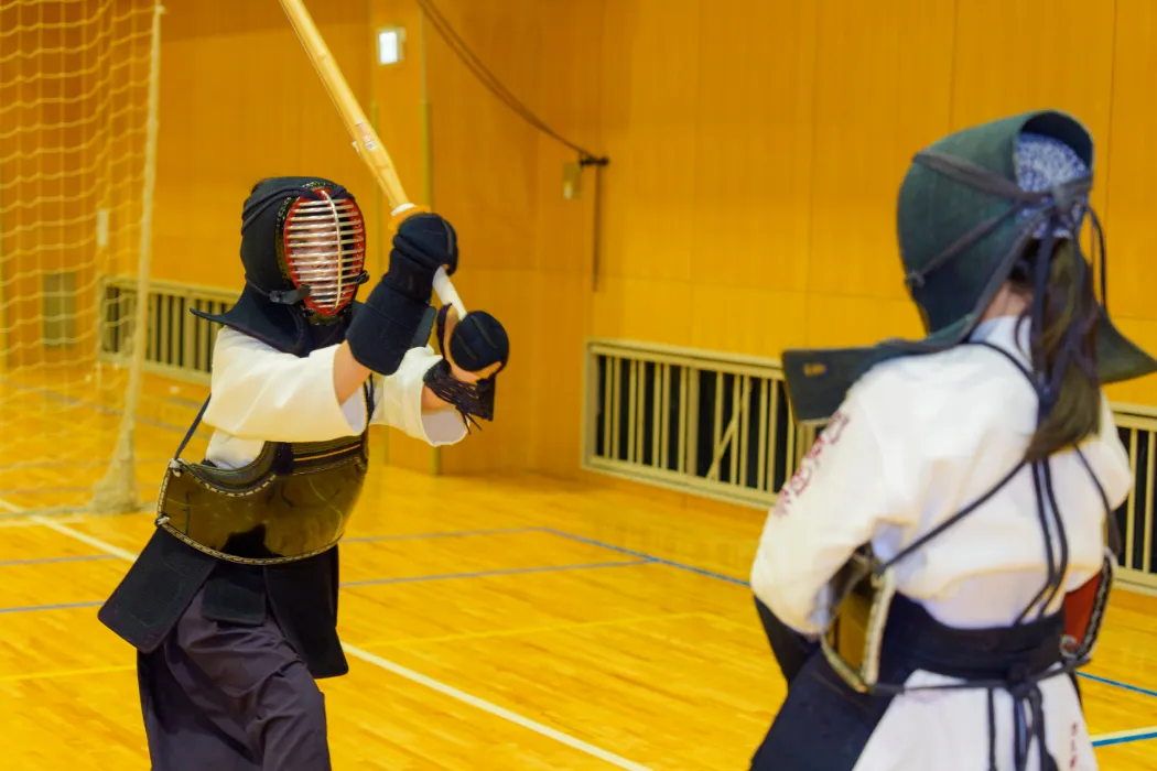 私たち剣道部は、現在3年生2人、2年生6人、1年生8人で活動しています。主な活動内容は、竹刀での基本打ちや防具を着けての稽古です。稽古中は集中して取り組み、休憩時間は和気あいあいとメリハリをつけて日々の練習に励んでいます。学年関係なく仲を深められるので、ぜひ体験しに来て下さい。未経験者も大歓迎です。