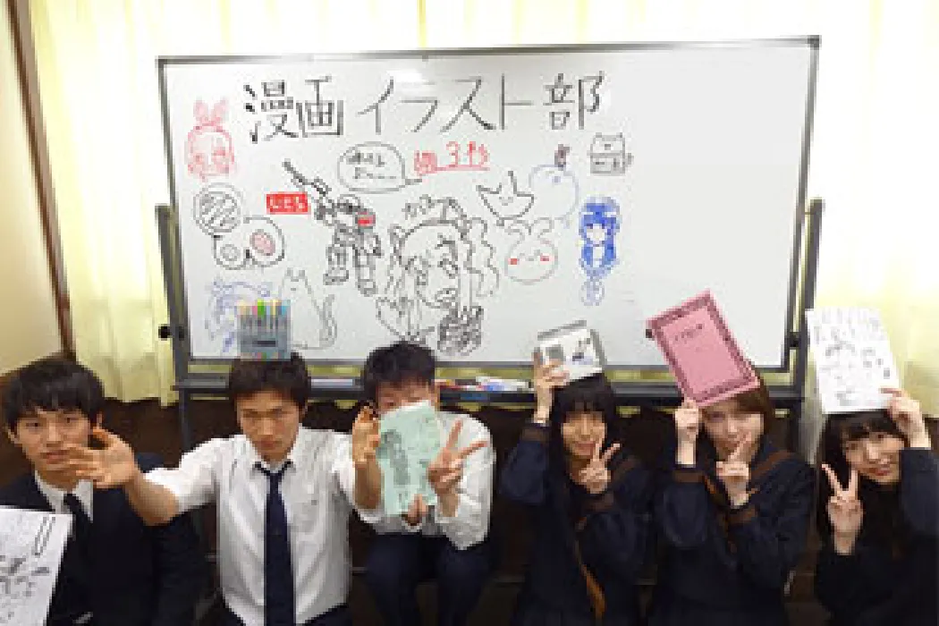 漫画・イラスト部の主な活動は各自でイラストや漫画を描くことです。時には美術館に行き、美術のセンスを磨き、今後の活動に活かしています。また、年1回の課題としてポスターや部活動紹介冊子を描くなどの活動もしています。ぜひ入部してください。体験入部待っています。