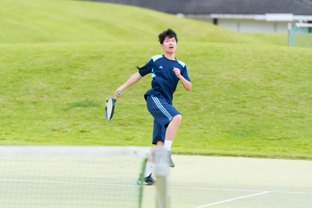 ごきげんよう。私たちテニス部は「楽しく!仲良く!協力し合う!」をモットーに、男女合同で活動しています。週二日の活動で、その内容は基礎練習と、ラリーなどの実戦的練習です。大会での勝利を目指し、日々練習に励んでいます。男女問わず、テニスが好きな人、テニスを楽しみたい人、高校でテニスデビューしたい人、是非、テニス部に参加してください。経験者はもちろん、未経験者の方も大歓迎です。