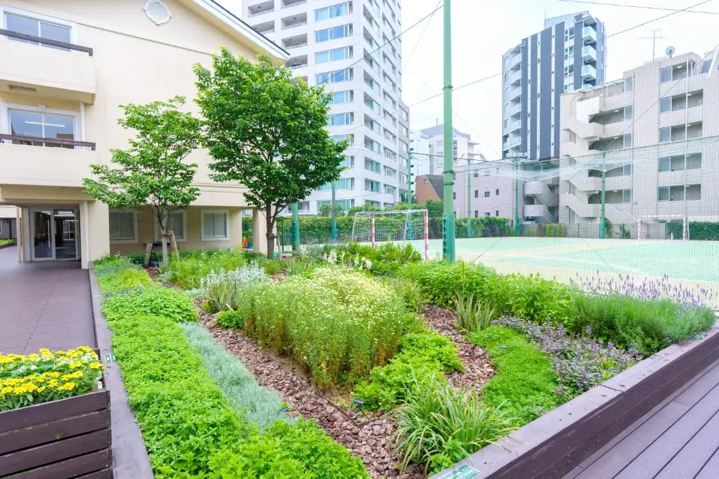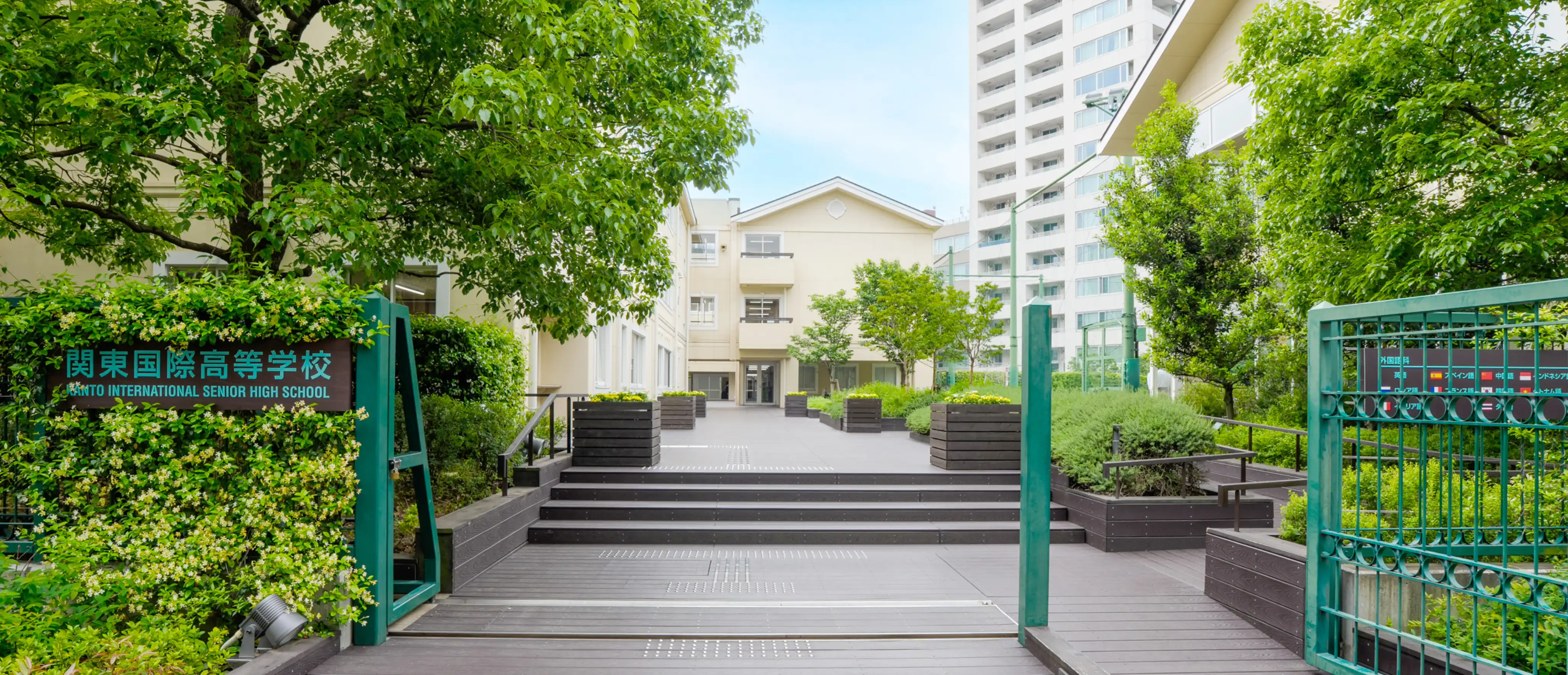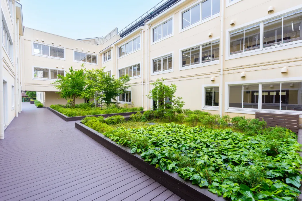 関東国際高等学校は、都心の利便性と住宅地の静けさを兼ね備えた理想的な環境にあります。季節の花が咲き誇るハーブ園で四季を感じ、開放的なカフェテラスで仲間との絆を深めながら、一人ひとりの個性を大切に育む。都心にありながら緑豊かな環境で、世界に羽ばたく人材を育成する、それが私たちの使命です。