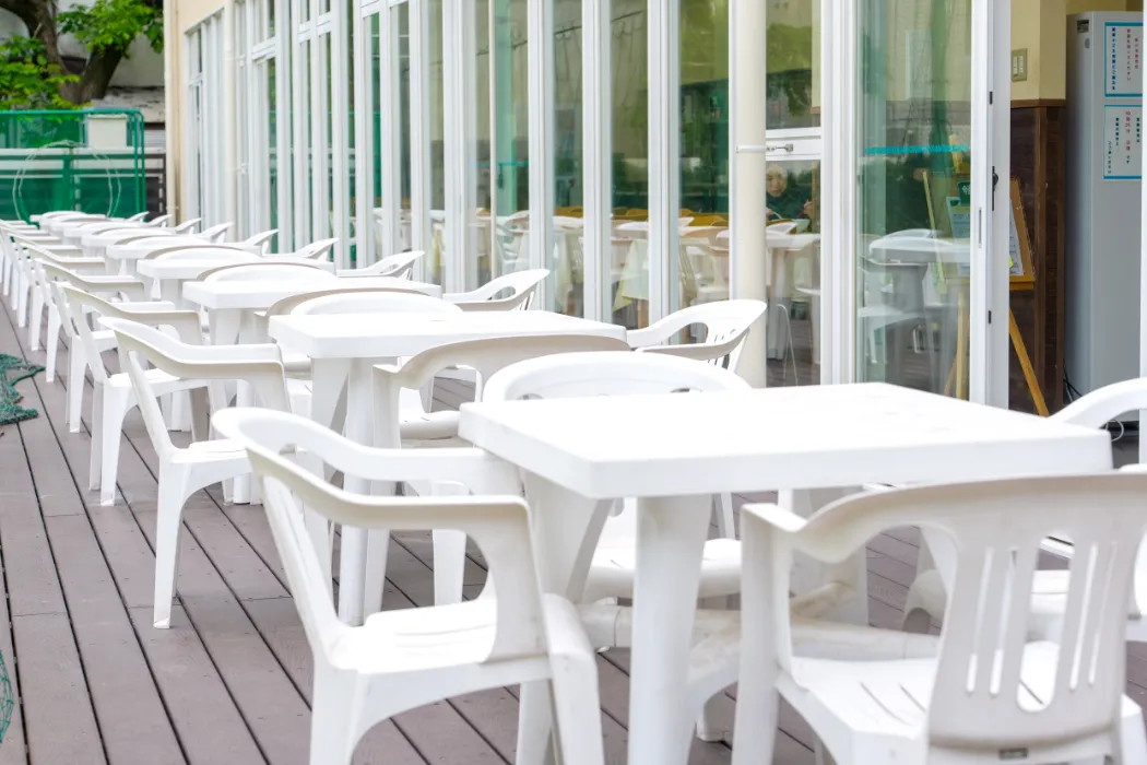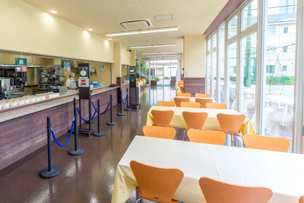 オシャレなカフェと開放的なテラスで、心も軽やかに。 おいしいランチと温かな陽射しが、学校生活を彩ります。