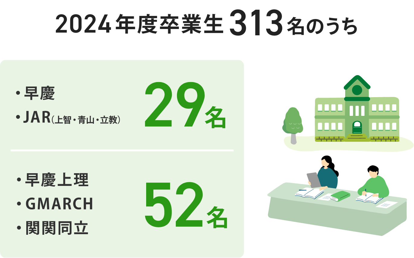 一人ひとりに寄り添った丁寧な進路指導により、憧れの大学へ、確かな道筋を築いていきます。