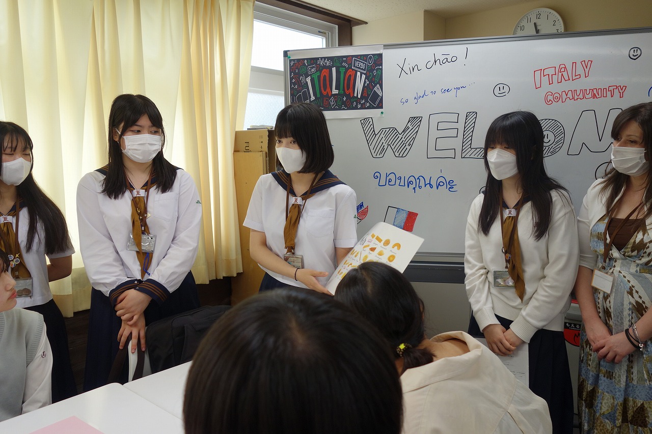 2時間目は、本校で学べる、中国語・ロシア語・韓国語・タイ語・インドネシア語・ベトナム語・イタリア語・スペイン語、そして今年度4月から新たに新設されたフランス語の中から興味のある2言語の授業を受けていただきました。