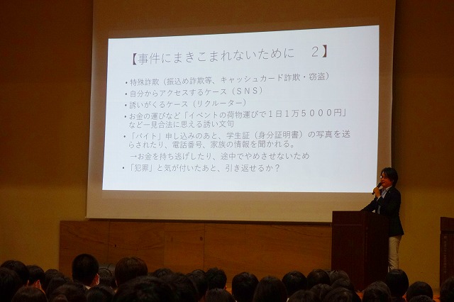 山本先生は、18歳で成人になるにあたっての心構えや注意点について、具体的な例を交えながらお話しくださいました。