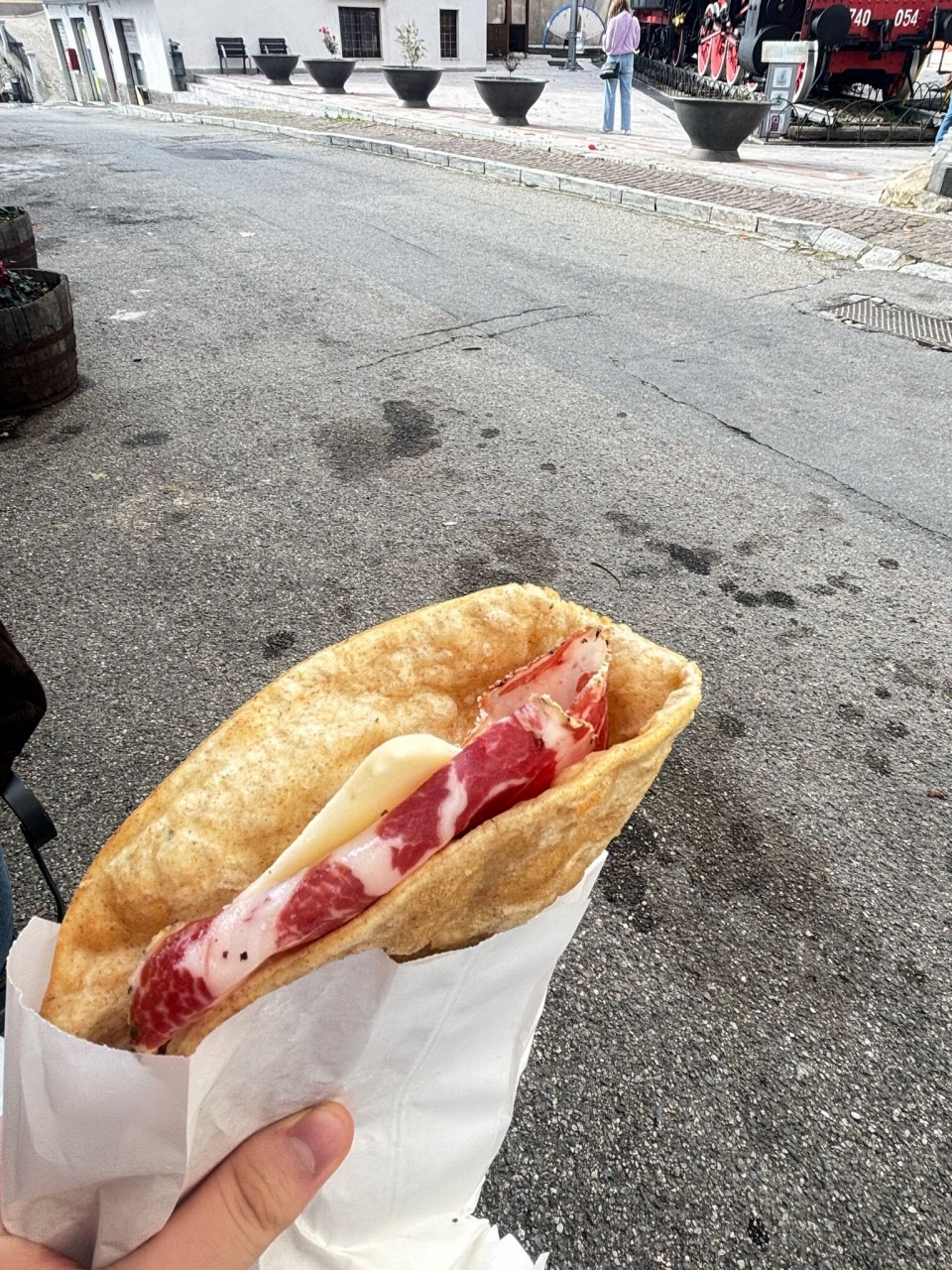 昼食では、カラブリアの名物品 “PIADINA“を食べ、その後約200段ある階段を上りカラブリアの景色を皆で眺めました。