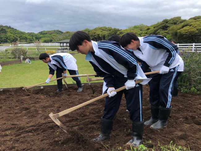 クラスごとに植え込みの楽しんでいる様子が見られます。