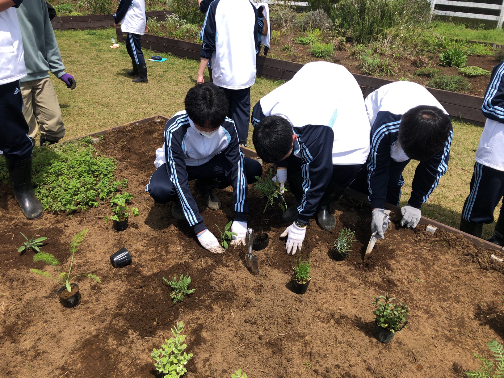 今週は英語コース1年生がハーブの苗を植え込みました。